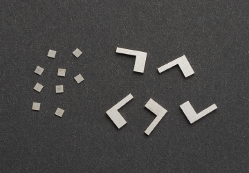 社内一貫加工により、ネオジウムを棒状へ切断加工、その後L型へ研磨、更に個片に切断しました。