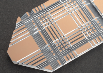刃先が90度V型のブレードを使用し、X・Y加工を行い、□1mmの四角錐形状になる様に溝加工しました。